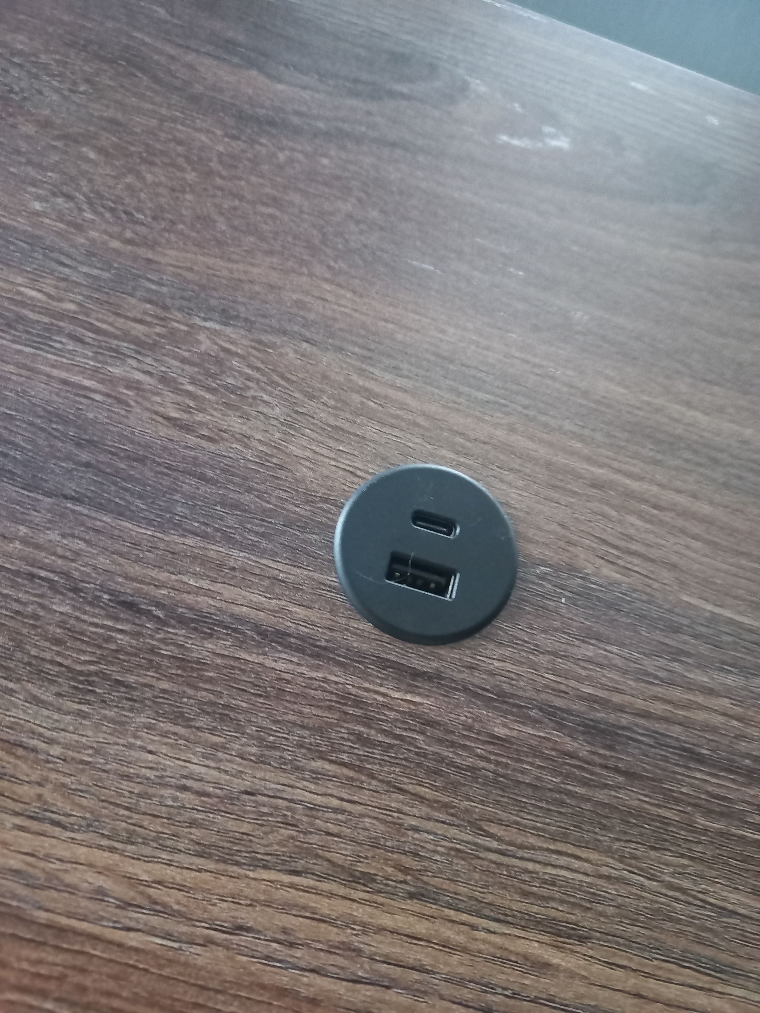 USB розетка для встраивания в мебель. Имеет 1 разъем USB и 1 разъем Type-C. Матовый пластиковый корпус.